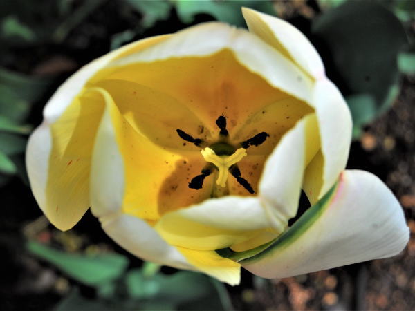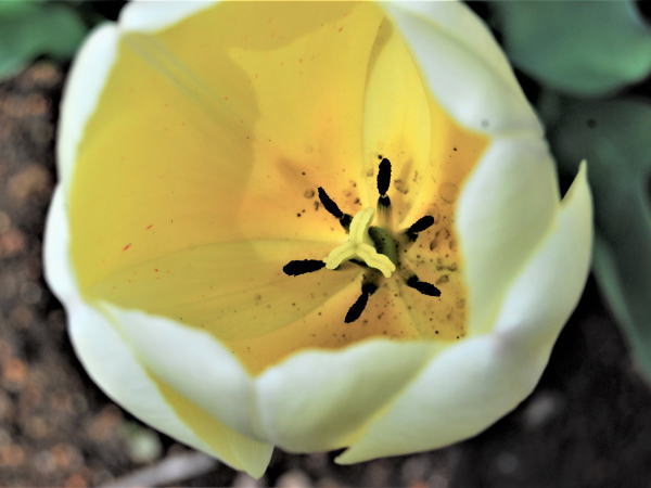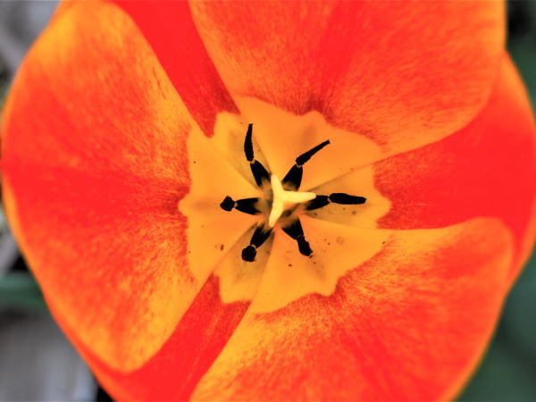さいた チュウリップ中心部の模様と雌蕊、雌蕊を写す、 それぞれが違い、花にも個性があると感じながらの撮影