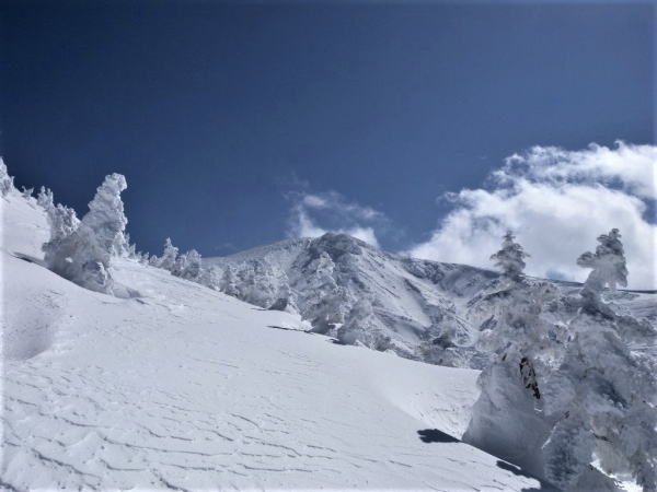 山頂より少し下り樹氷を楽しむ