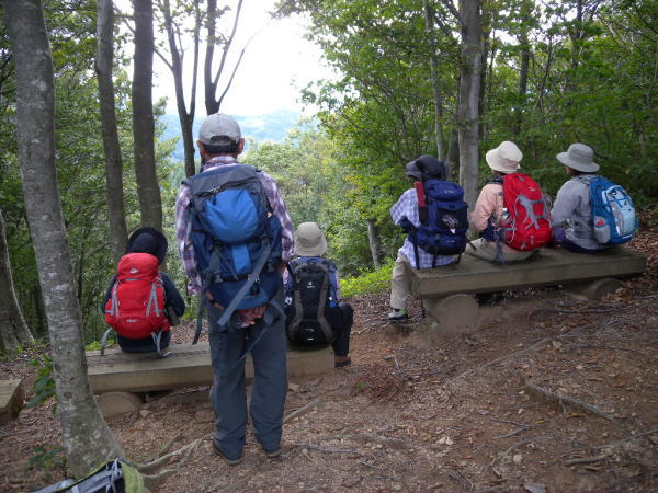 山頂広場でゆっくりと昼食を楽しむ仲間達
