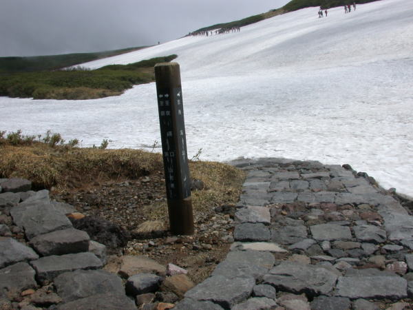 山形県大平山荘の吹浦口コースと秋田県鉾立山荘の象潟口コースからの河原宿の分岐