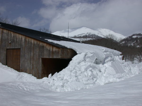 湯殿山山頂ですが雪で埋まる(雪の張り出し・雪庇)